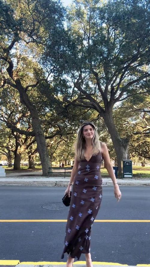 Long-Sleeved V-Neck A-Line Midi Dress -